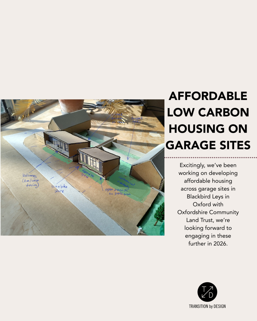 📣 From speaking at numerous events including Marmalade Festival, Oxford Architecture Society and RIBA Guerilla Tactics, to completing community engagement on several projects and deep retrofits, to designing affordable housing on garage sites with Oxfordshire Community Land Trust and a regenerative village with Bowden Pillars Future.