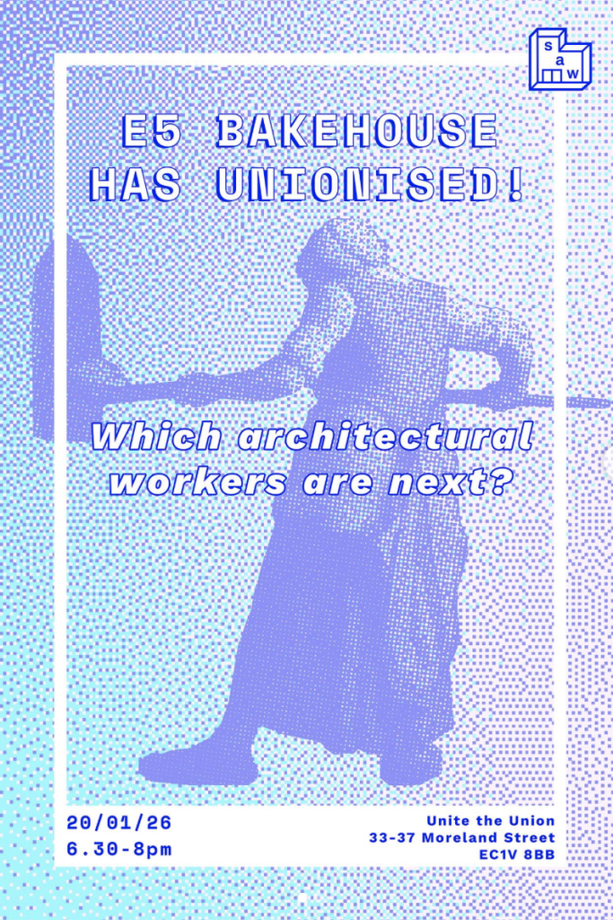 On 20th January, Sammy-Jo and Liv went to the SAW (Section of Architectural Workers – the Union for Architectural Workers’) – branch meeting at Unite the Union’s headquarters. They went along to hear about how E5 Bakehouse unionised and signed a recognition agreement (formally allowing the bakery to recognise the union). E5 Bakehouse workers proved how you can unionise in sectors where unions aren’t the traditional norm.